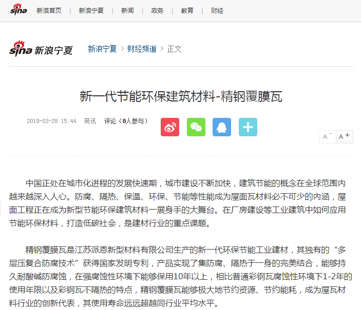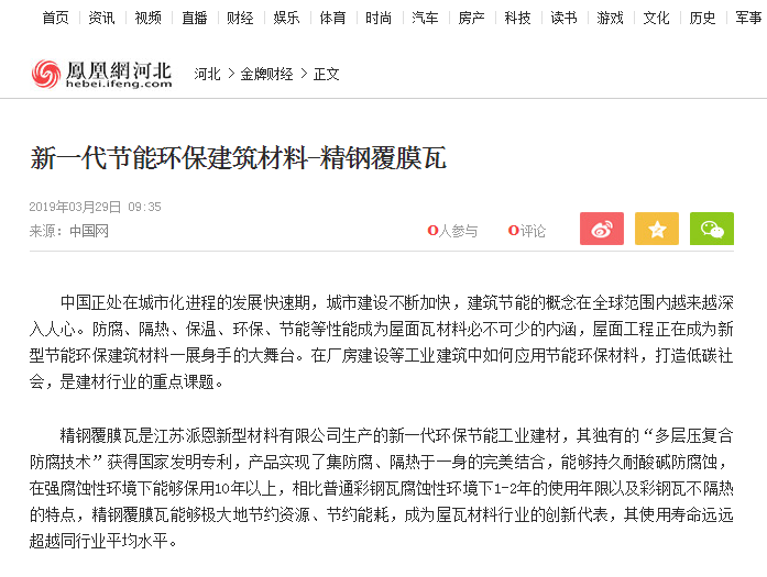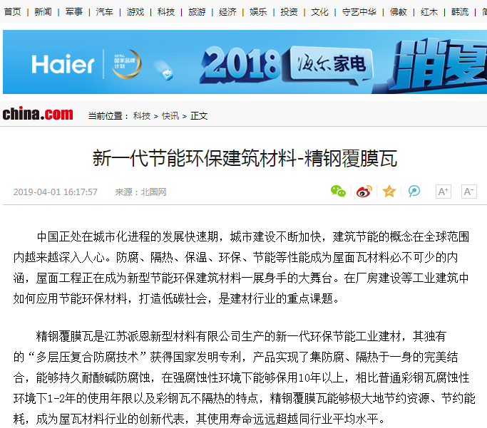 近日,中華網、鳳凰網、新浪網等數十家媒體就91香蕉视频黄色公司自主研發生產的新一代節能環保建築材料——91香蕉视频污污污下载覆膜瓦產品予以廣泛報道,引發社會強烈反響。