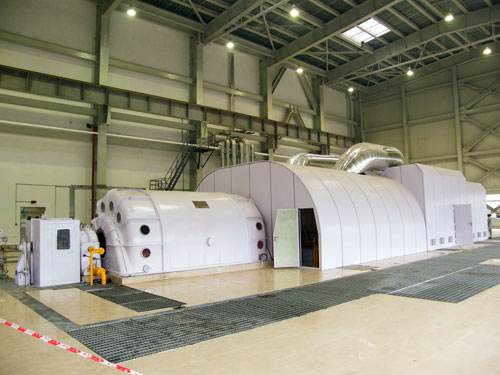 汽機車間主要設備有汽輪機和發電機。另外還有凝汽器、除氧器、加熱器、給水泵和凝結水泵等。汽輪機用來將蒸汽的熱能轉化成旋轉的機械能,並傳遞給發電機發出電能。發電機與汽輪機一 樣重要,它安裝在汽機房內,由汽輪機作原動機拖動發電機轉子旋轉,並利用電磁感應原理把機械能轉換成電能。